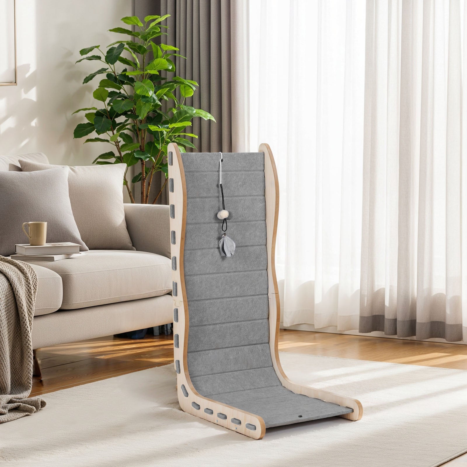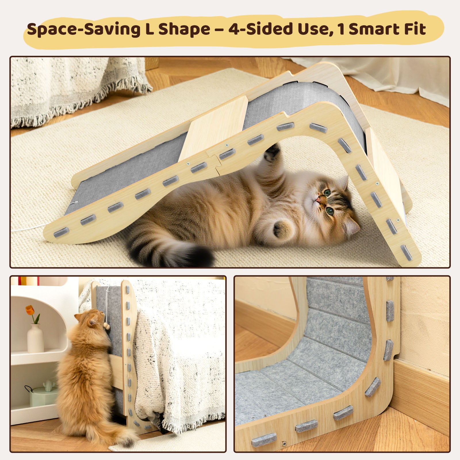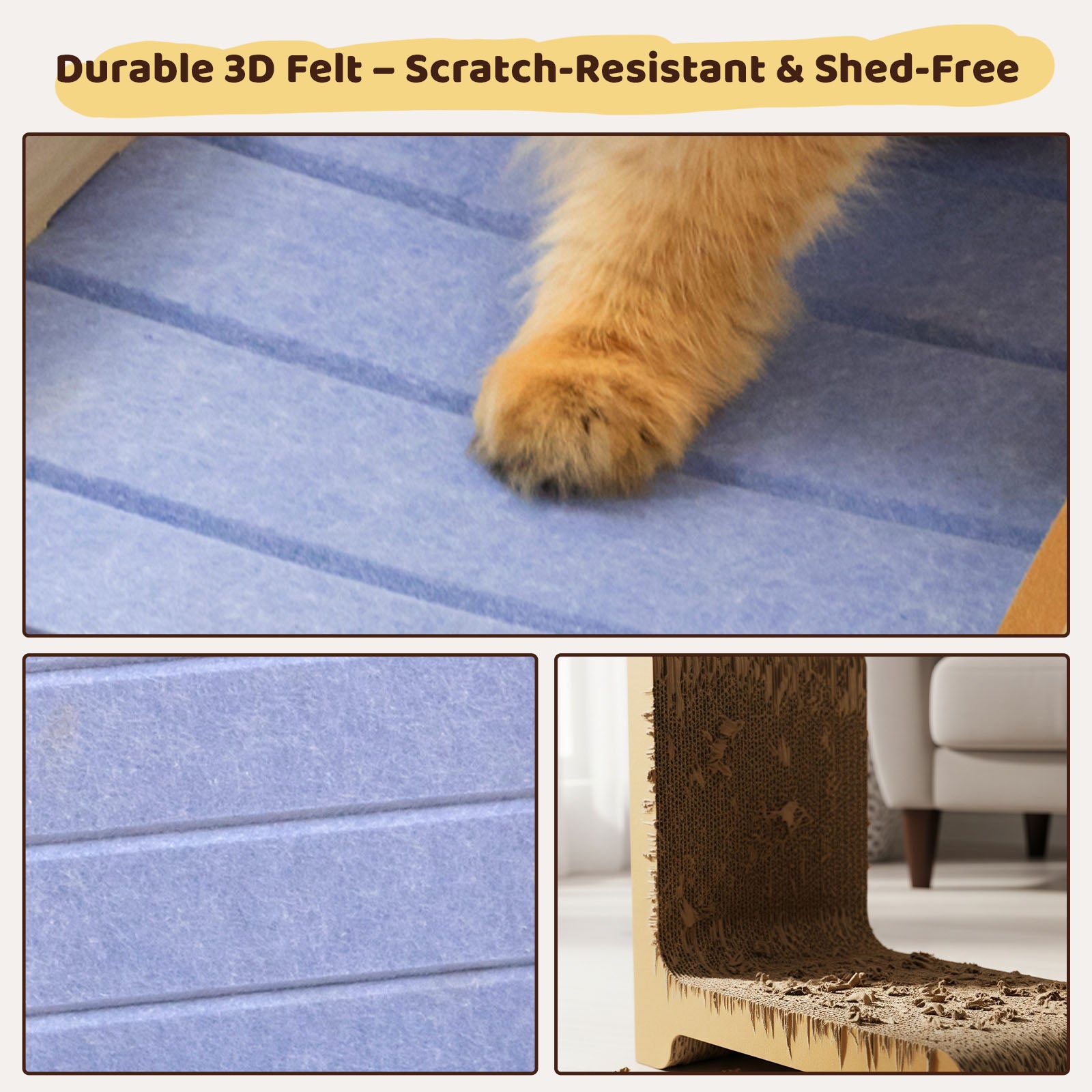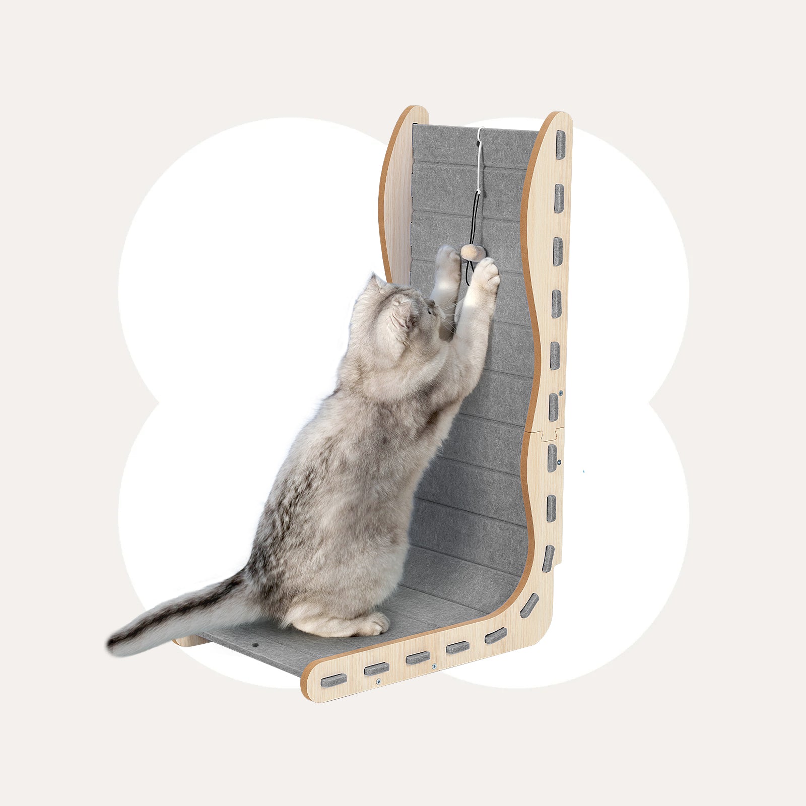 We recommend using our cat scratchers in conjunction with our cat scratchers from Happy & Polly to prevent them from tipping over easily. Placing the non-slip pad under the base of the cat scratcher enhances its stability, ensuring a secure and sturdy scratching experience for your cat.