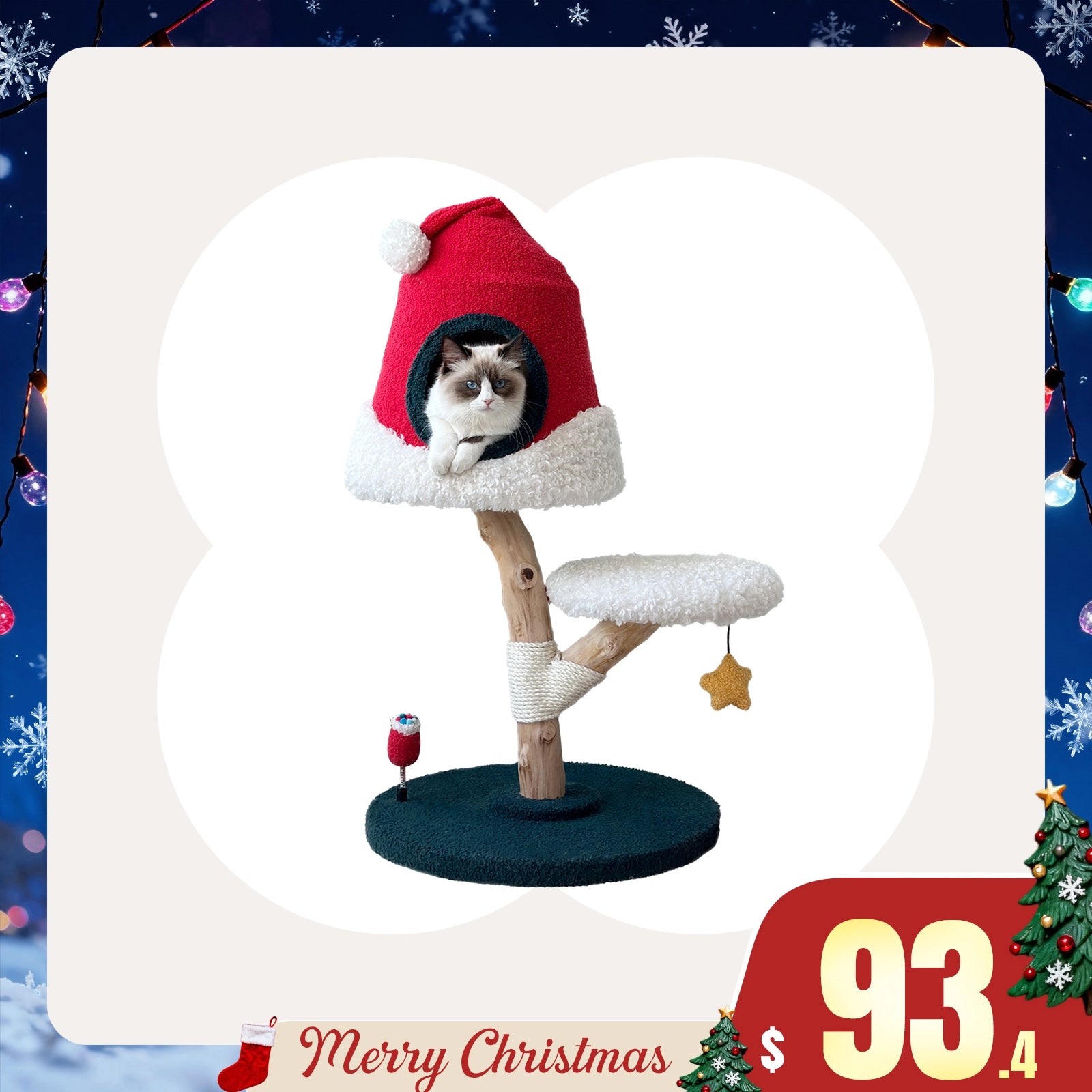 Highly recommend Moonlight Cat Tree to anyone who wants a pretty and ethereal cat tree! Transform your little kitty into a star-gazing enthusiast with our enchanting Night Sky-themed Cat Tree! With hammocks and high seats, it's a playground designed for leaping and lounging under a celestial canopy. The hanging moon and stars spark playful hunting games, ensuring endless entertainment.