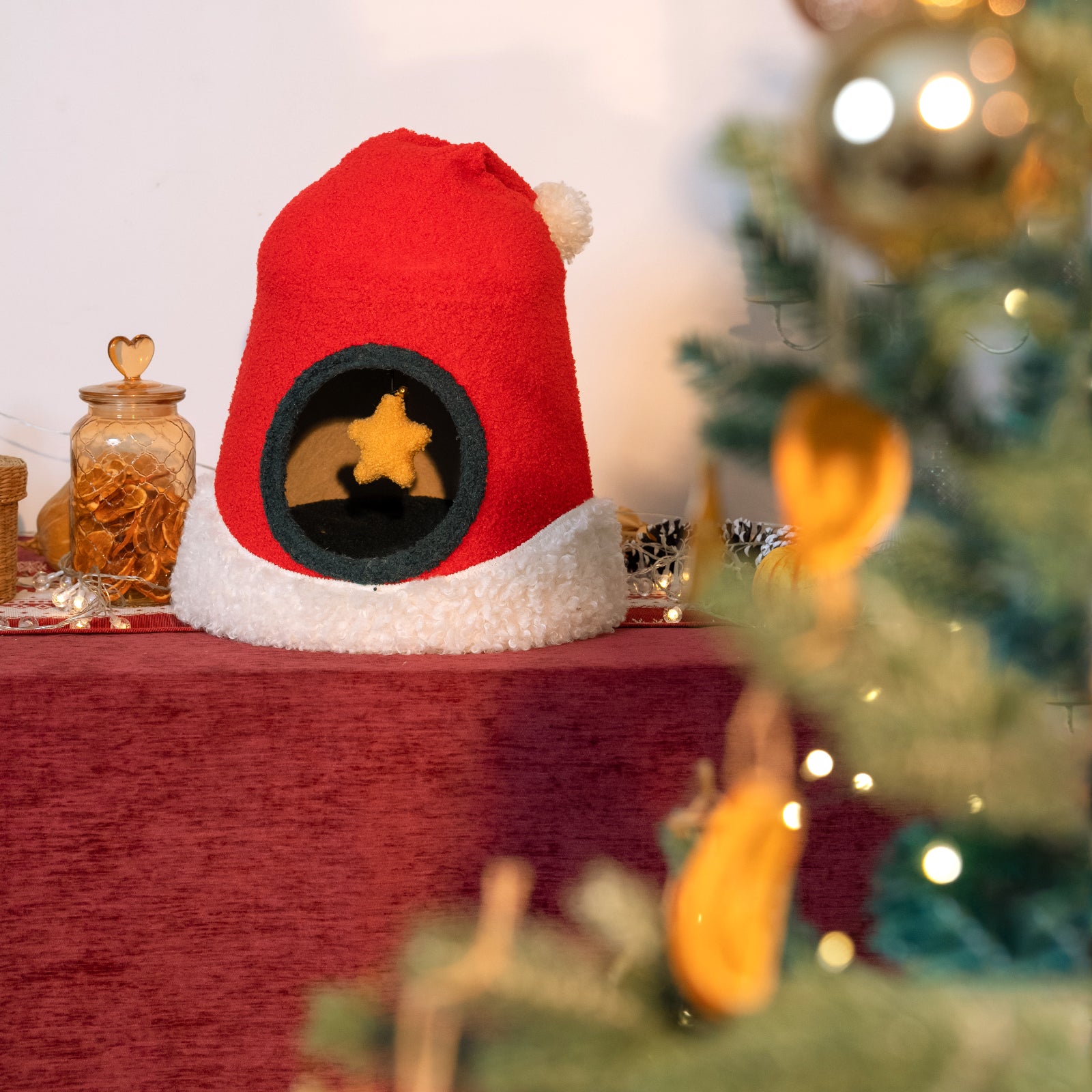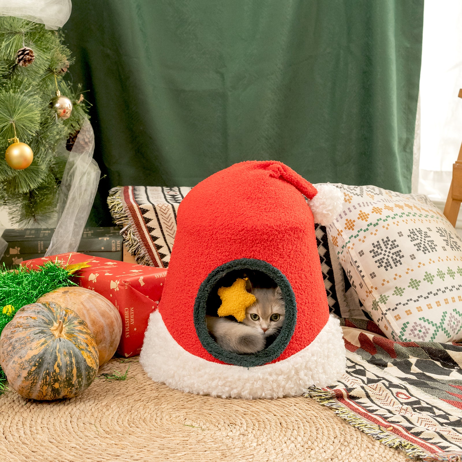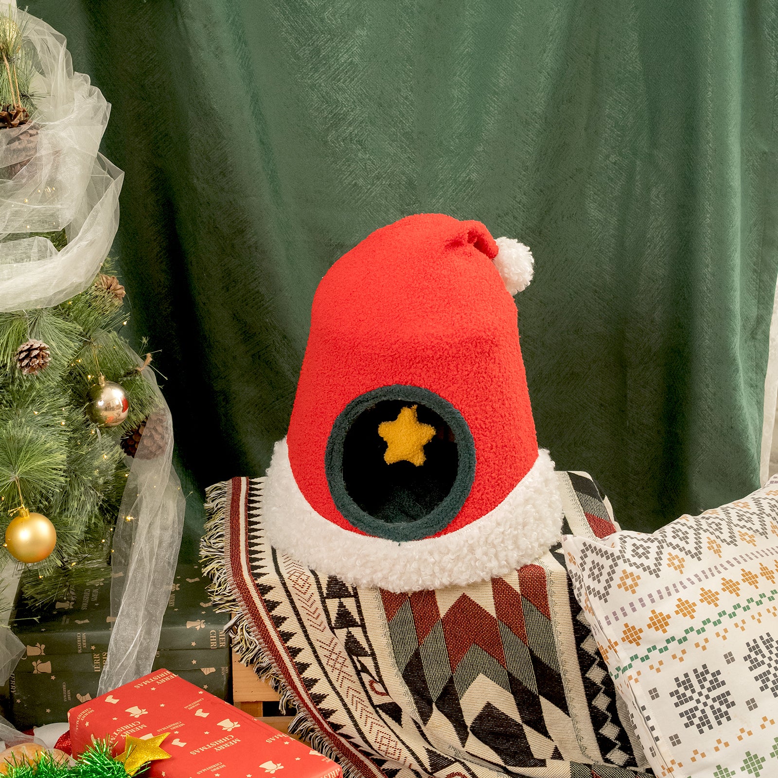Christmas Santa Hat Cat Bed