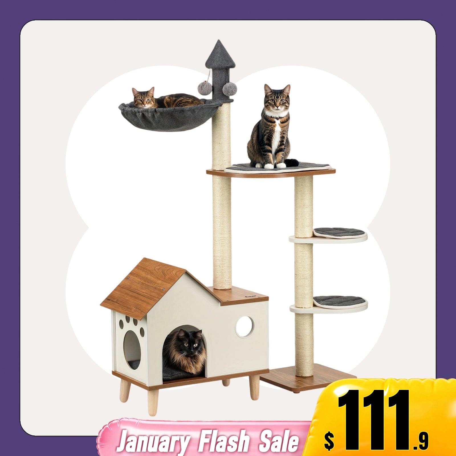 Wooden House Cat Tree