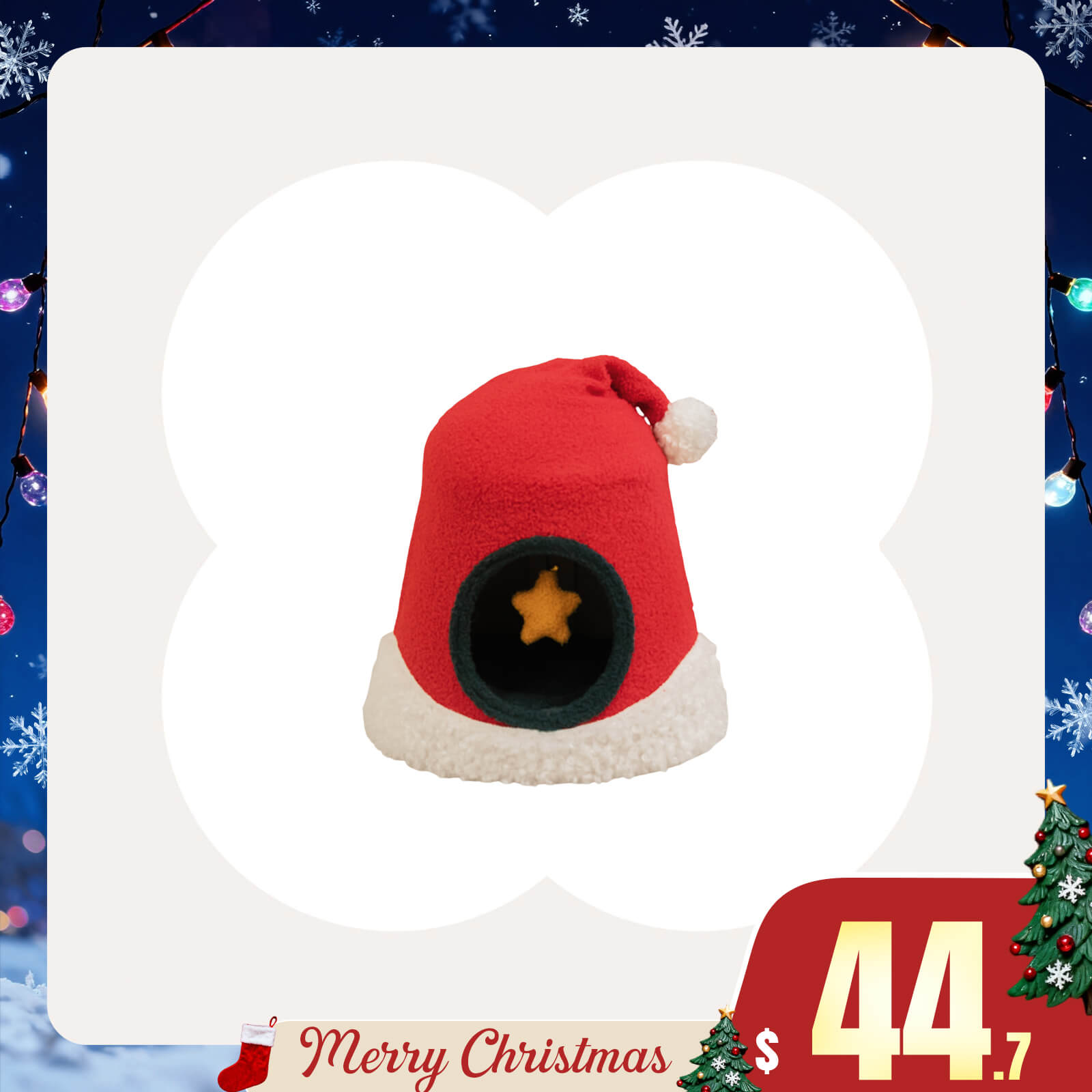 Christmas Santa Hat Cat Bed